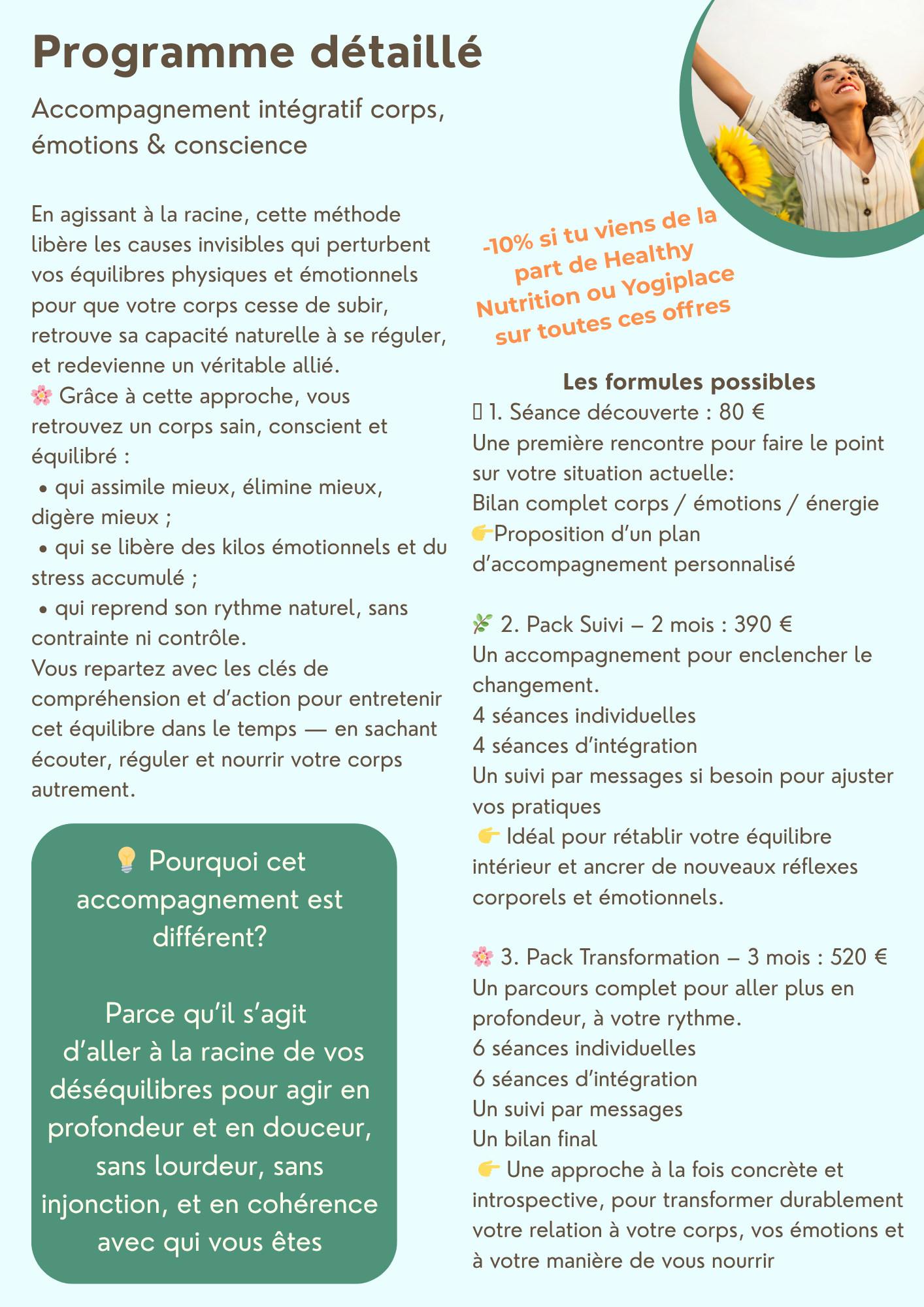 Je propose un accompagnement sur-mesure pour transformer l’épreuve en tremplin vers votre épanouissement, grâce aux outils du bilan de compétences, coaching, sophrologie, yoga, neurosciences et méthodes d’accompagnement transgénérationnelle – MEGC.